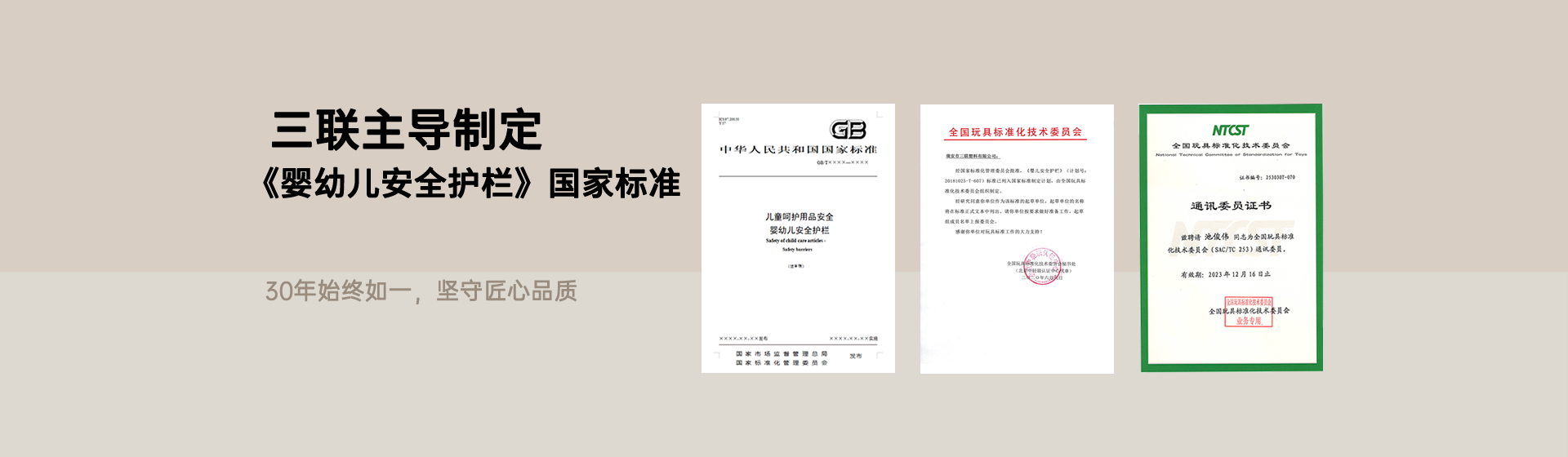 ? ? ? ? 近日,國家市場監(jiān)督管理總局、國家標準化管理委員會發(fā)布中華人民共和國國家標準公告(2025 年第 24 號),由瑞安市三聯(lián)塑料有限公司作為第四起草單位、公司產品經理池俊偉擔任起草人的國家標準《兒童呵護用品安全 嬰幼兒安全護欄》(GB/T 46508-2025)正式獲批發(fā)布,并將于 2026 年 11 月 1 日起全面實施。這一標準的出臺,不僅填補了當前嬰幼兒圍欄類目缺乏統(tǒng)